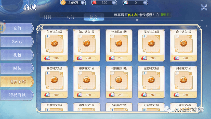 这个卢恩铭文也是加战力比较多的,但是也是一个比较氪金,铭文只能通过商城购买或参与破晓之战,而破晓之战是等级50级开启,每天可以参与三次且战力低的话也容易秒没,也抢不到怪物。