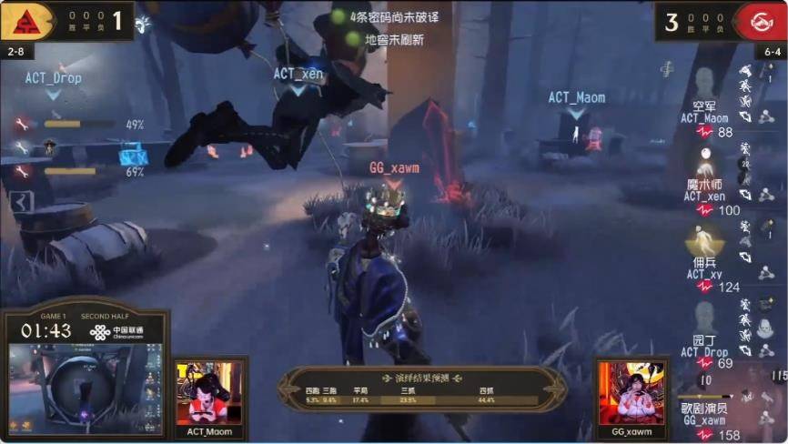 下半轮ACT战队监管者3抓获得胜利。