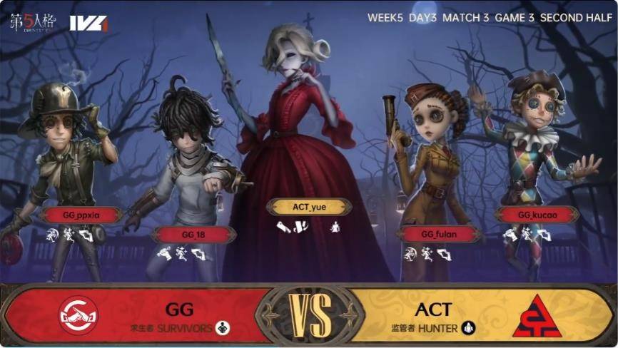 今天将进行的是第五人格2023IVL秋季赛常规赛的第5周第3天第3场比赛,对阵双方为成都GG站队和ACT战队。