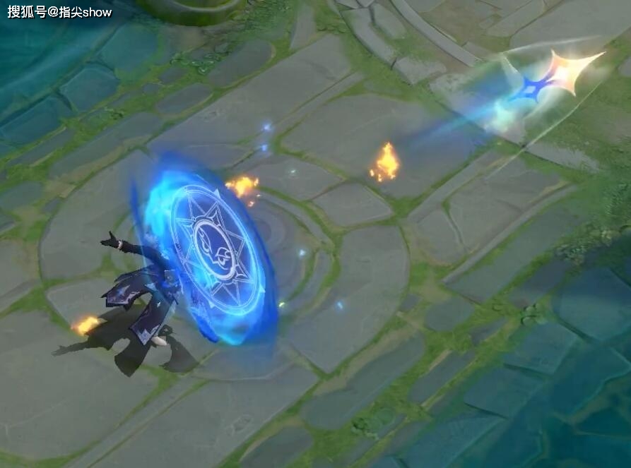 强普做的不错,释放星形弹头,强化攻击下蓝色魔法阵浮现。