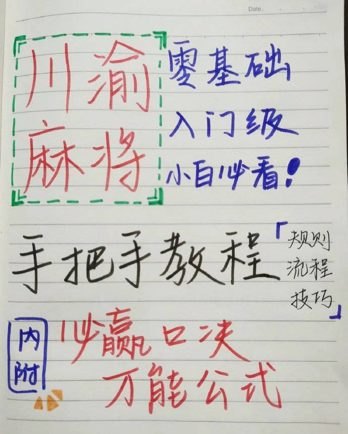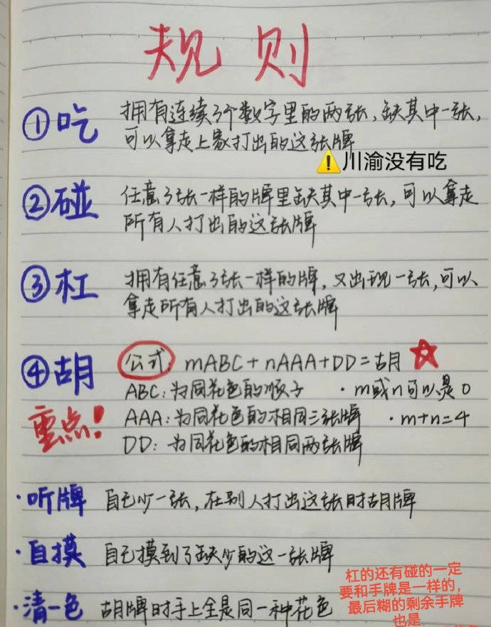 麻将玩法还未开启,已经有玩家手把手教学了。比如这位玩家就手写了川麻的玩法规则,真的是零基础入门级教程,新手小白也能轻松学会如何打麻将,不会的可以先学起来了。