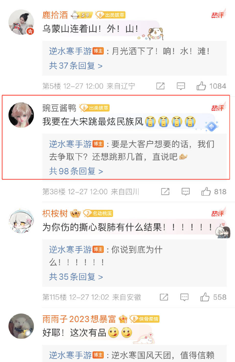 作为国民级顶流组合,凤凰传奇的歌不仅是广场舞神曲,更是备受年轻人追捧。之前在投票选联动对象时凤凰传奇的票数就位居前列,可以说凤凰传奇的每首歌大家都耳熟能详,当得知《逆水寒》手游真的把凤凰传奇请来了时,玩家纷纷表示要在游戏里跳《最炫民族风》,《逆水寒》手游官方也表示要去争取一下,以后说不定真的能在大宋跳广场舞了!