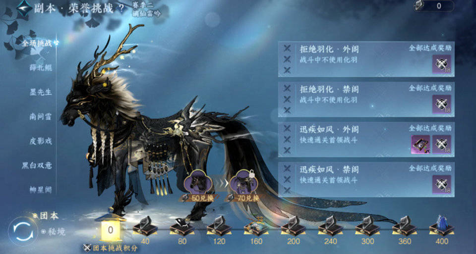 另外,跨年版本上线后全面升级的荣誉挑战也将开放,闲趣、副本、竞技全模式覆盖,各类玩家都可以按照自己的喜好来选择性完成挑战。我们只要完成相应挑战就能获得大量精美外观,还有豪华坐骑【墨流云】系列&马鞍【蟠烟】系列,真正做到殊途同归。
