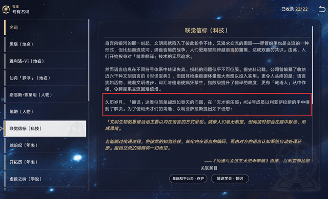 由此可见,虽然“天才俱乐部”这个名字有点小俗气,但里面的成员个个都是狠角色,他们随手的一个造物就能打破宇宙格局。比如游戏中让全宇宙得以沟通的“联觉信标”只是天才俱乐部中“以利亚萨拉斯”为了方便和俱乐部成员沟通随手搞出来的东西。这样看来,阮·梅这种级别的人物,天才俱乐部恐怕真的不少啊。