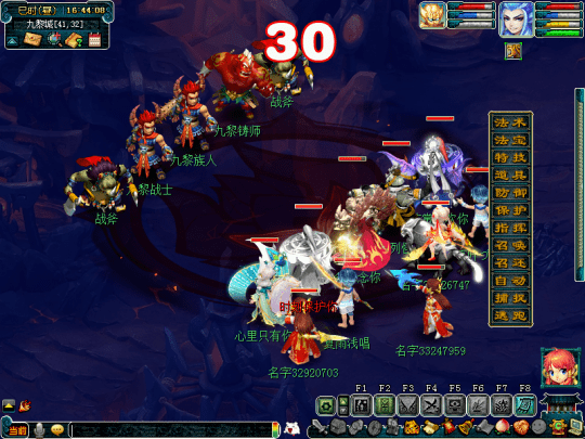 九黎魔族(九黎城78,54)进入第四场战斗—