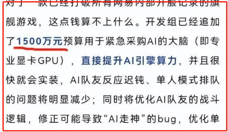 作为网易旗下的MMO开放世界旗舰手游《逆水寒》的AI自然不是那种点个松鼠鳜鱼,画个真松鼠给你的便宜货。网易借助自家的伏羲人工智能,打造了超级强大的AI,但是才过了几个月,就被玩家玩到服务器冒烟,需要花费千万人民币紧急提升AI的大脑。