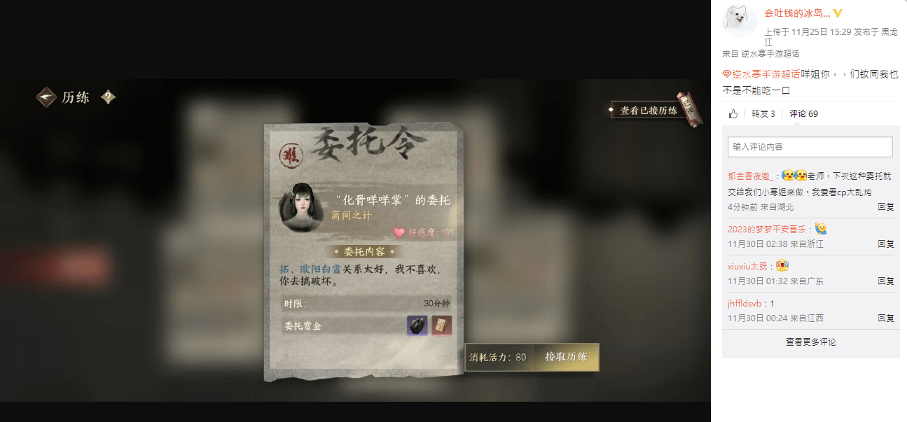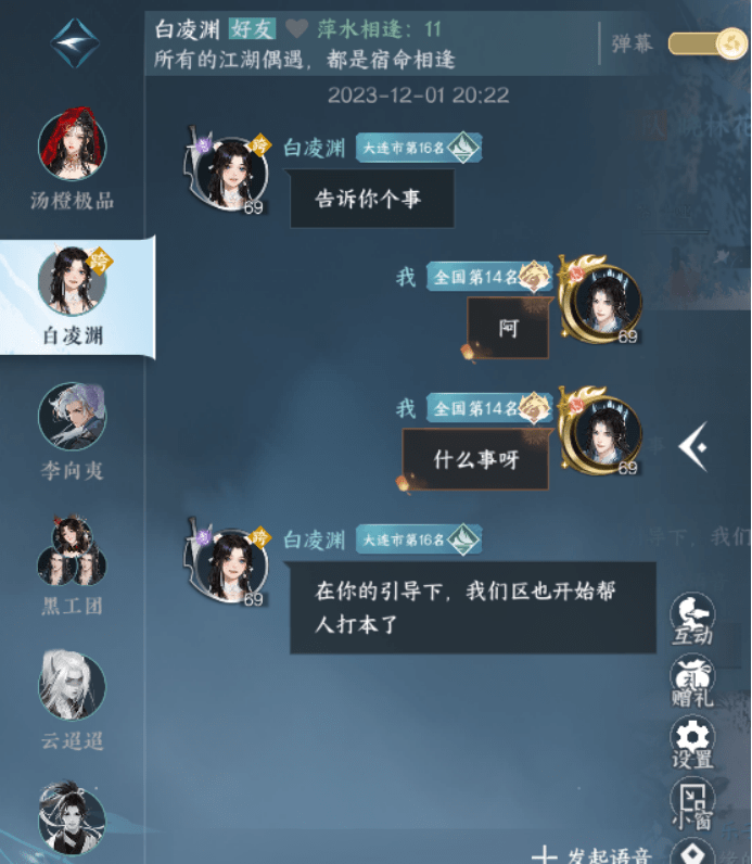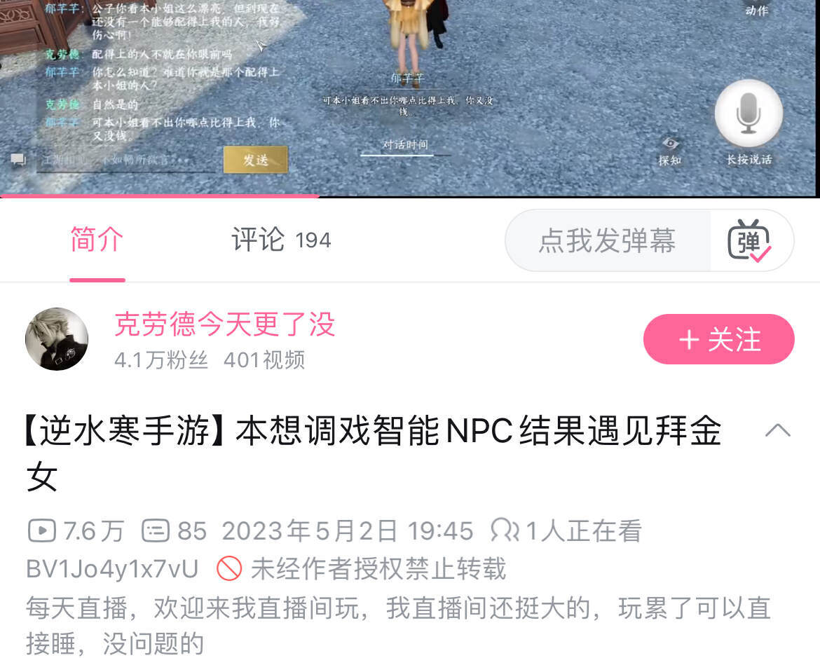 如果说只是能打副本,可能还比较简单。但要命的是《逆水寒》手游的玩家钟爱和NPC聊天整活。不光每天打副本一起玩,还经常跟NPC讲故事,给他们说离谱的现代故事,弄得NPC大脑经常过转。