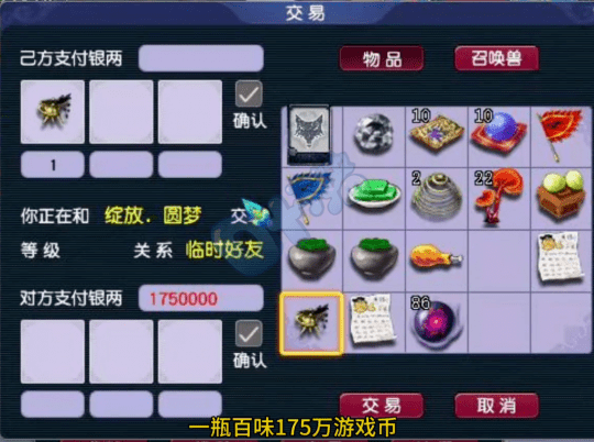 与此同时,这个火爆新服的物价也十分诱人。烹饪等级一经开放,市面上稀有的百味酒便被开价到175W游戏币。同名新服果然是寸土寸金,目前区内金价比例也已经高达1:1000,也就是说这瓶百味酒价值175元!