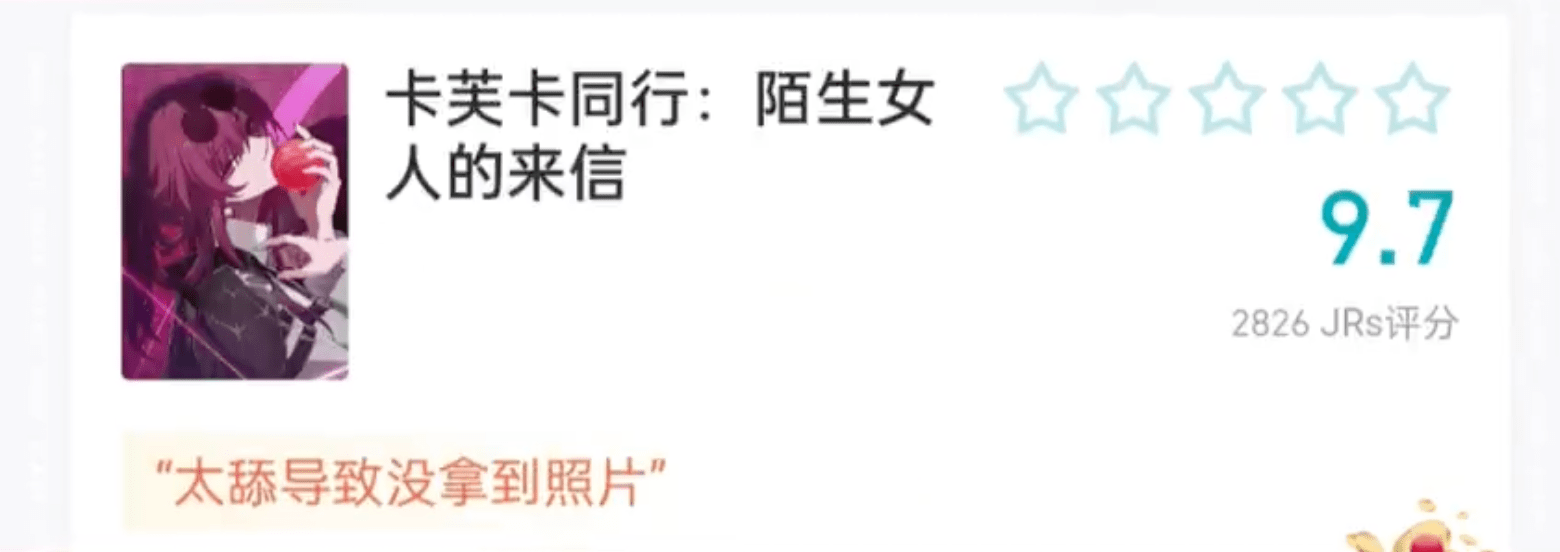 比如深受玩家喜爱的卡妈——卡芙卡,因为开拓者,也就是玩家操控的主角是由她创造的,所以玩家都亲切地喊她“妈”,同时也是玩家进入游戏最先接触到的角色,她的地位不言而喻。在虎扑论坛中,她的同行任务都获得了9.7的高分,实至名归了。