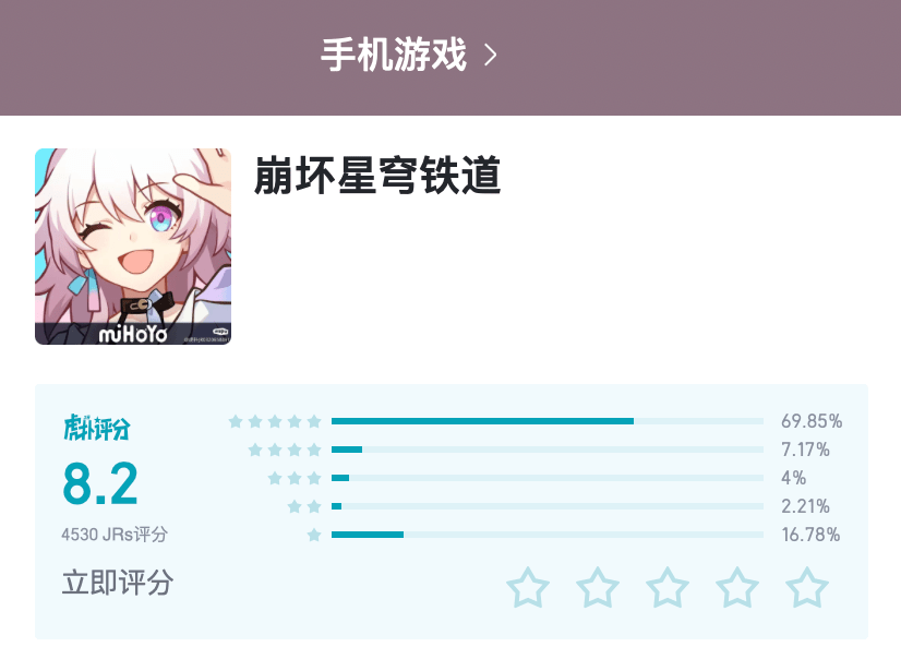 近段时间以来,虎扑评分成了很多网友的讨论方向,因为这上面可以给各种各样的项目打分,还诞生了许多金句和梗,日常看虎扑评分已经成了一个乐子。不过虎扑评分有很多情绪分,相对来说评分比较苛刻,言辞也格外犀利,低分是很常见的事。而在这种情况下,米哈游旗下游戏《崩坏:星穹铁道》里的角色、NPC,甚至是道具,在虎扑却是全员高分,最低都有8.0,难道说虎扑变味了?