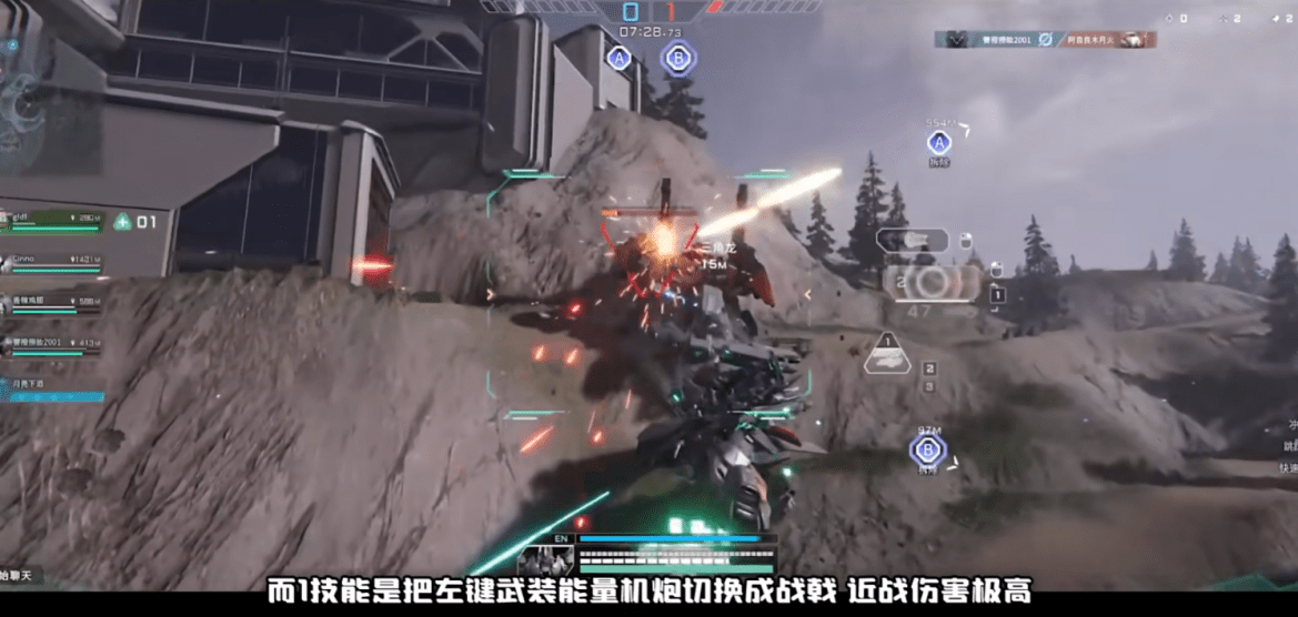 其他8台机甲也有各种不同手感可以体验,除开近战与防守的战斗体验,多数机甲的攻击模式还是偏远程射击,这也使得在空战当中需要更加灵活,游戏中遇袭之后会有语音提示攻击会来自哪个方向,你需要快速反应是否对敌人攻击实施反扑,还是决心利用有限的EN值加速逃离,这不仅需要你有不错的驾驶技术,更需要你及时洞察队友实时位置,以便做出合适的战术决定。