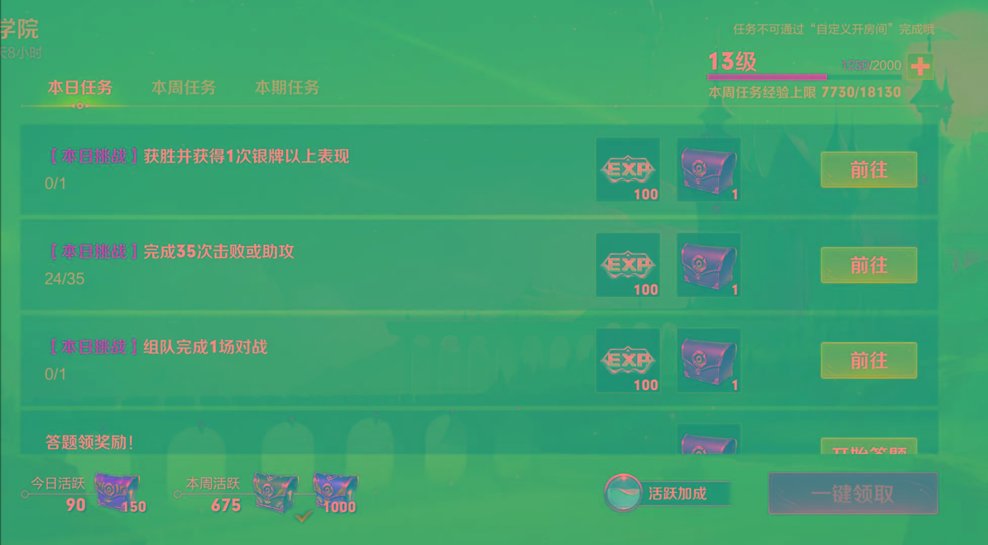 这个本周任务和本期任务,就对应以往赛季的周任务和赛季任务,而这个本日任务则是新增的。