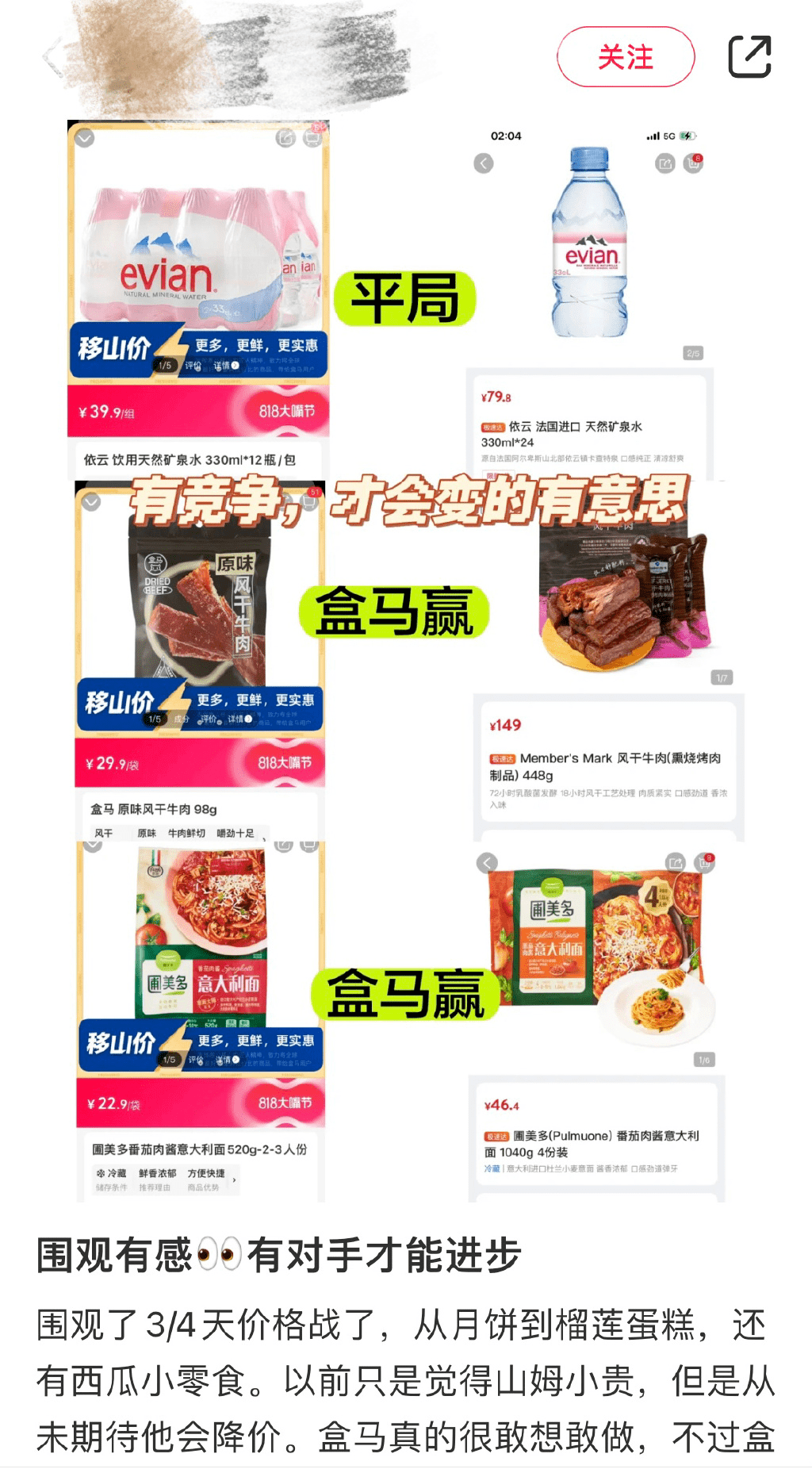 而盒马与山姆的爱恨情仇,也是快厚成一本书了。