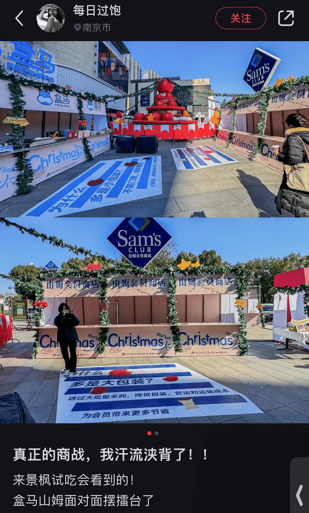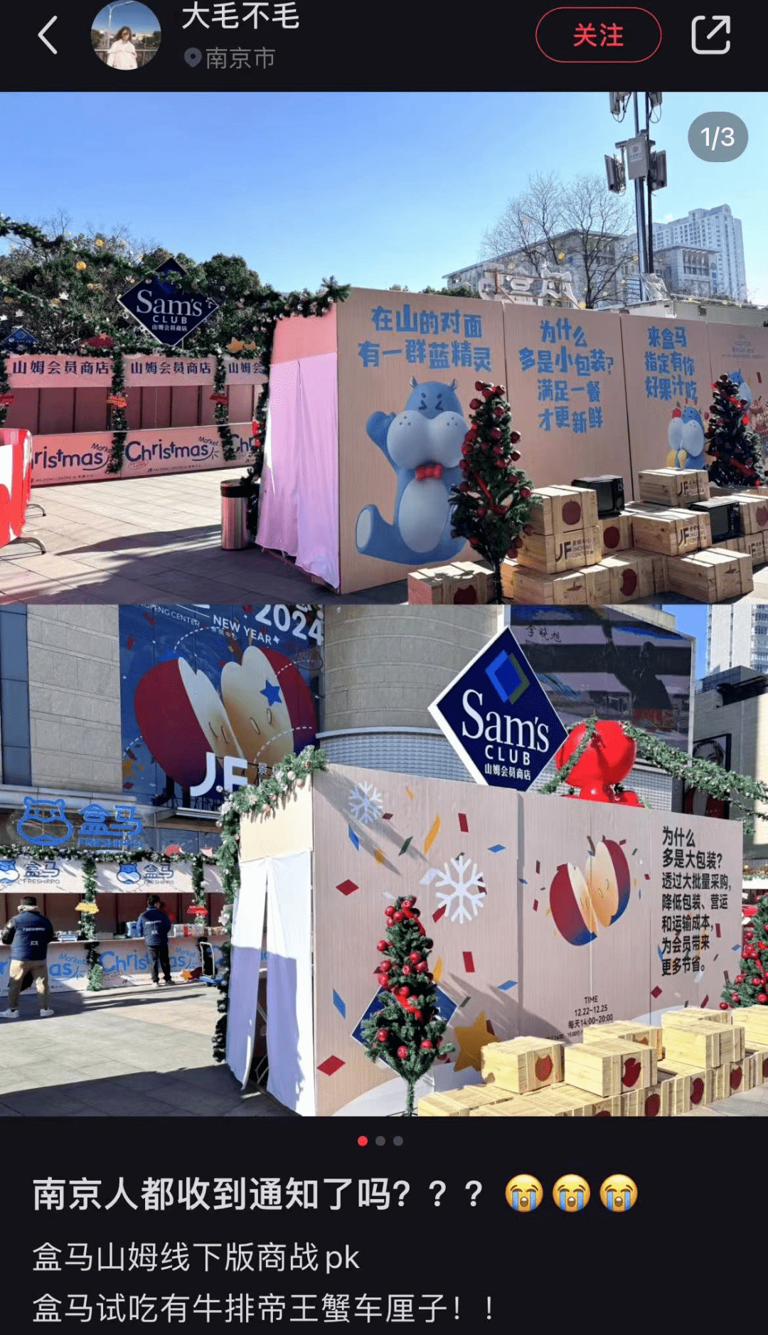 之前山姆因为下架新疆产品惹争议,盒马直接贴出海报欢迎山姆会员。