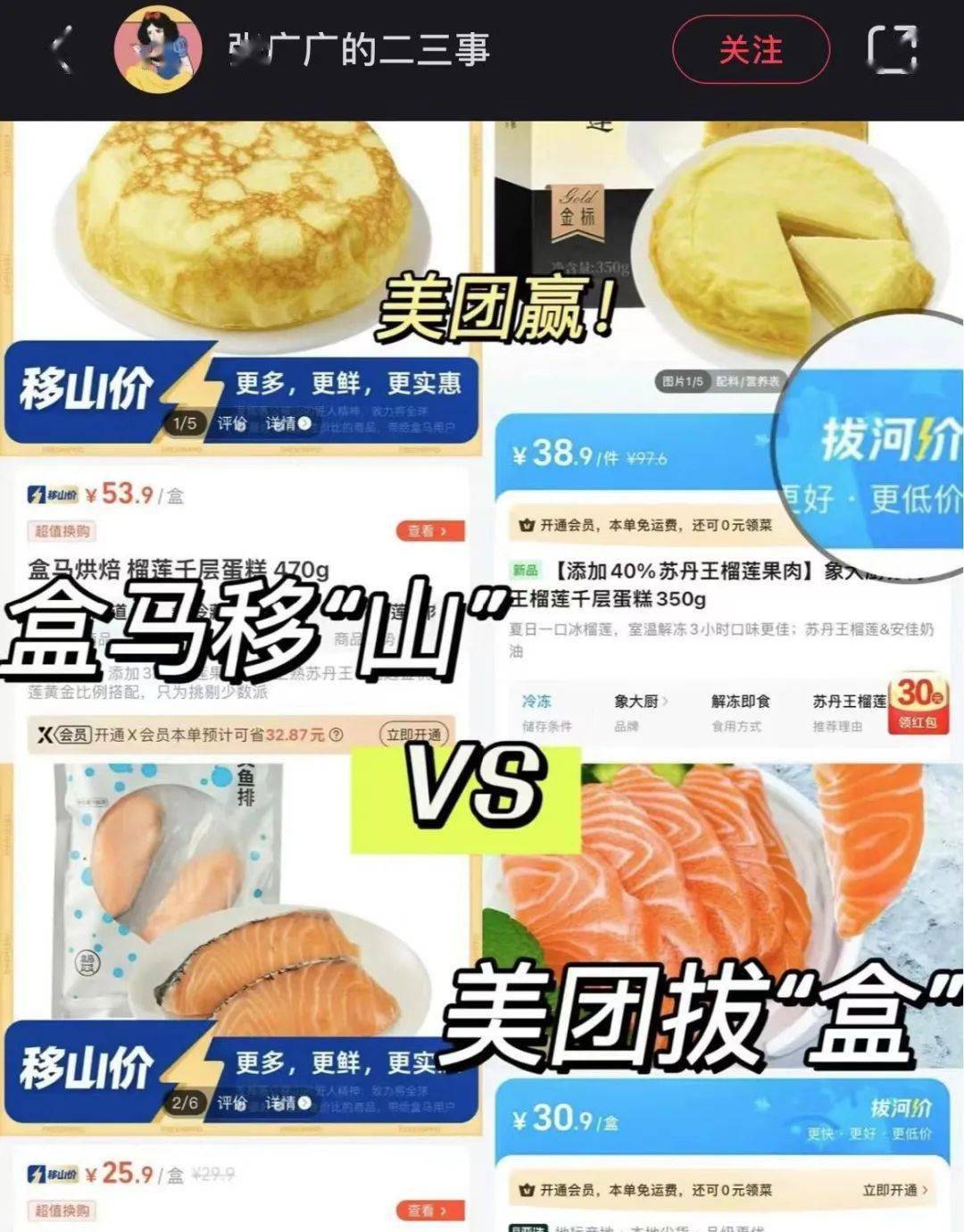 这边盒马在跟山姆打“移山价”,那边美团就搞了个“拔河价”。