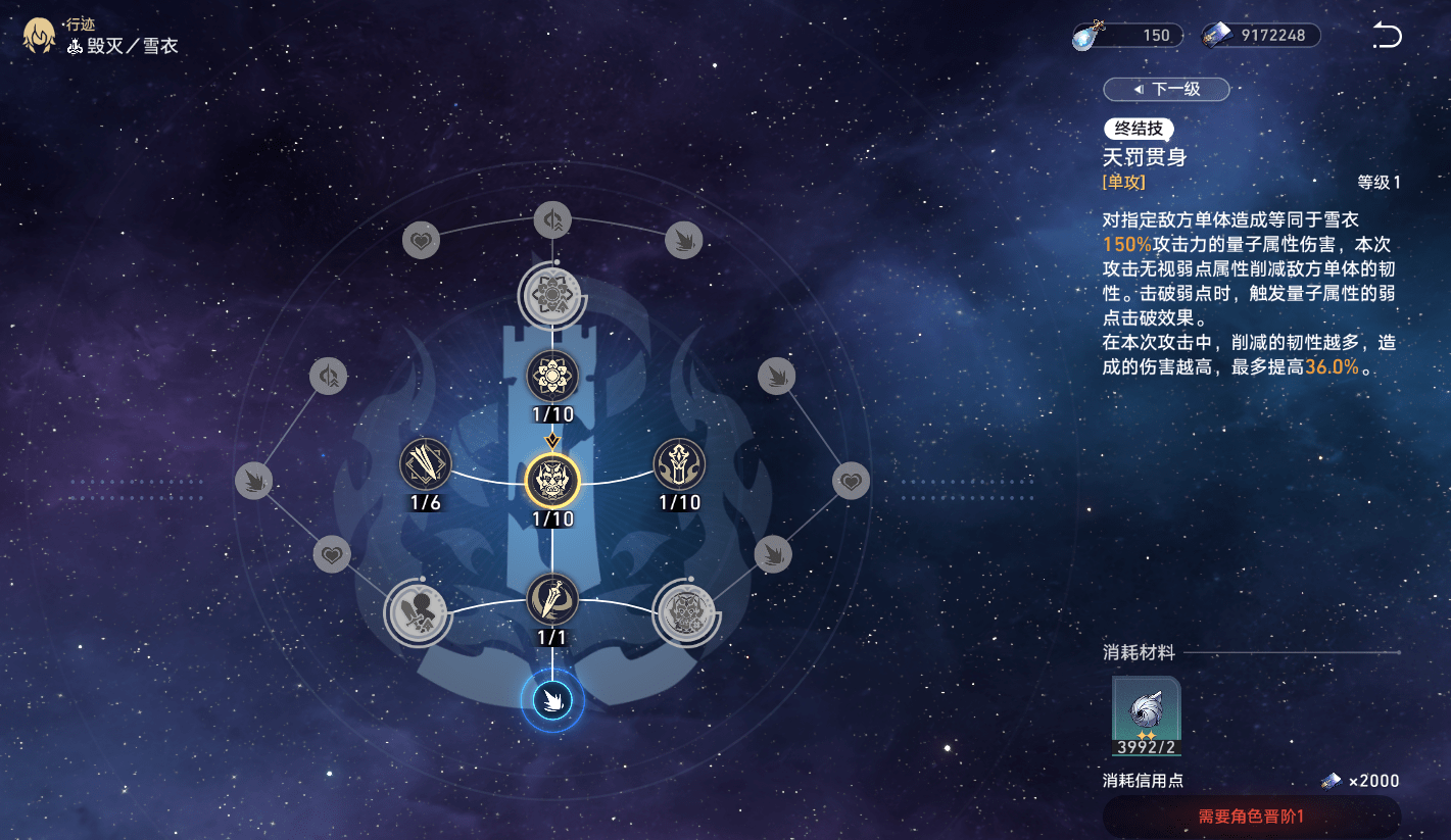 雪衣不仅强度堪比一个五星,她的终结技“天罚贯身”更是华丽,在正常速度播放下确实有一种“这一击,贯穿星辰”的感觉。这种特效,如果让一个不了解这款游戏的玩家来看,根本不太可能会认为她是四星角色。已经有好多玩家和主播被雪衣的终结技给帅翻了。