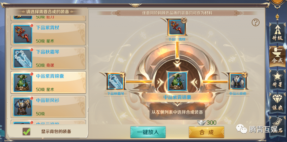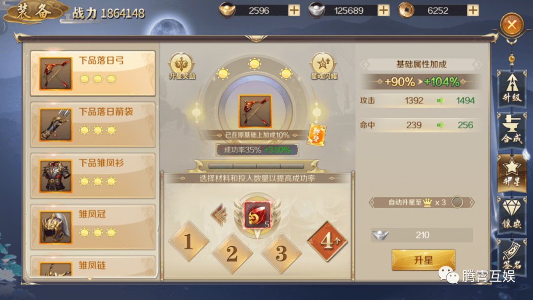 4.升星有成功几率,失败时会降星,但历史最高星数不变,装备加成和星套效果取历史最高星数