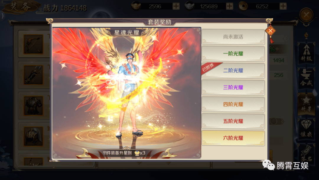 2.人物可穿戴的11件装备和马匹装备都可以单独升星,升星后可以增加装备额外属性,星数越高,带来的属性提升越大