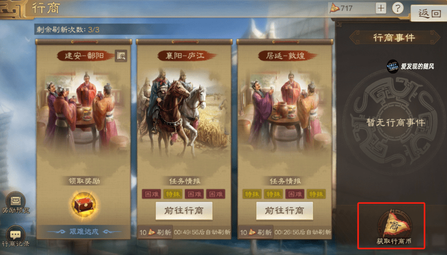 其次每天只能进行三次行商,但是可以通过消耗行商币的方式刷新不想做的行商任务。