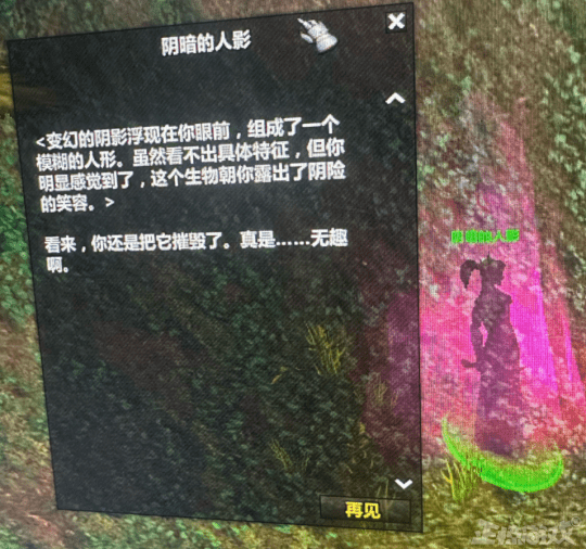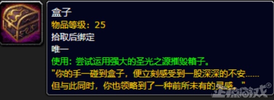 此时,一个阴暗的人影会出现在你的面前,对盒子的摧毁深表遗憾,并教会玩家用虚空碎片制作强大紫装的方法。