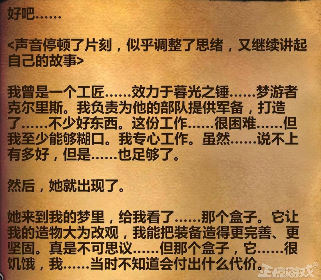 经过对团本六号BOSS们梦游者克尔里斯的讨伐,我们终于从BOSS的只言片语中推断出神秘盒子被埋在深渊最深处,持续扭曲着进入这片遗迹的生物思想、性格。