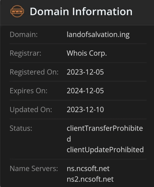一位博主发现NCSoft于2023年12月5日注册了一个新项目的域名,该域名是“landofsalvation.ing”(Land of Salvation 救赎之地),此项目可能是一款以游骑兵《地平线》宇宙为背景的MMO游戏。