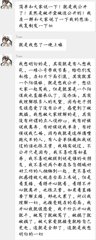 Mage在自己的粉丝群里做了解释,表示这波有人搞自己带节奏,阳谋不可必,不公开是不希望私生活被放到台面上让大家议论,希望观众看直播开心就行,不用去过多了解主播。