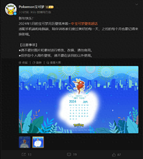 新年快乐!宝可梦官方分享24年1月手机/电脑壁纸