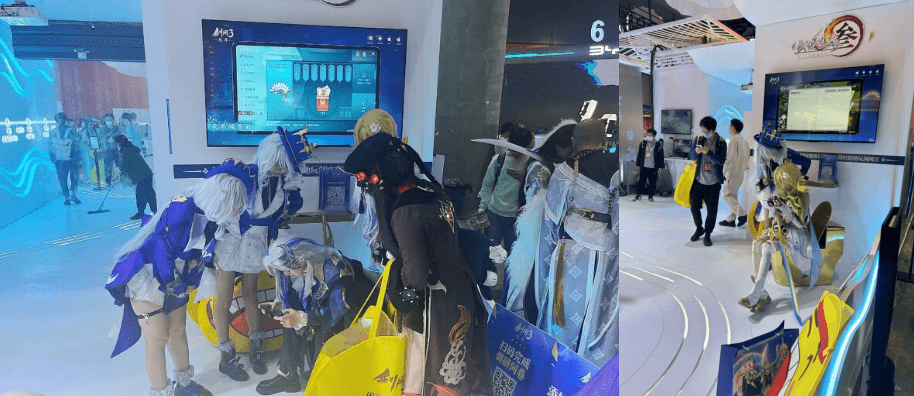 值得一提的是,参与排队试玩的玩家不仅数量庞大,“成分”也颇为复杂。不仅有身穿剑网3校服的大唐侠士乘坐“时光机”来到现代,还有许多本属于“提瓦特大陆”的旅行者也一同穿越而来。只见不光是“那维莱特”坐在金马桶上玩起了《剑网3无界》,就连“芙宁娜”都在一旁驻足旁观不肯挪步。这波啊,是“破界”太过成功导致展厅被原神玩家反向占领了。
