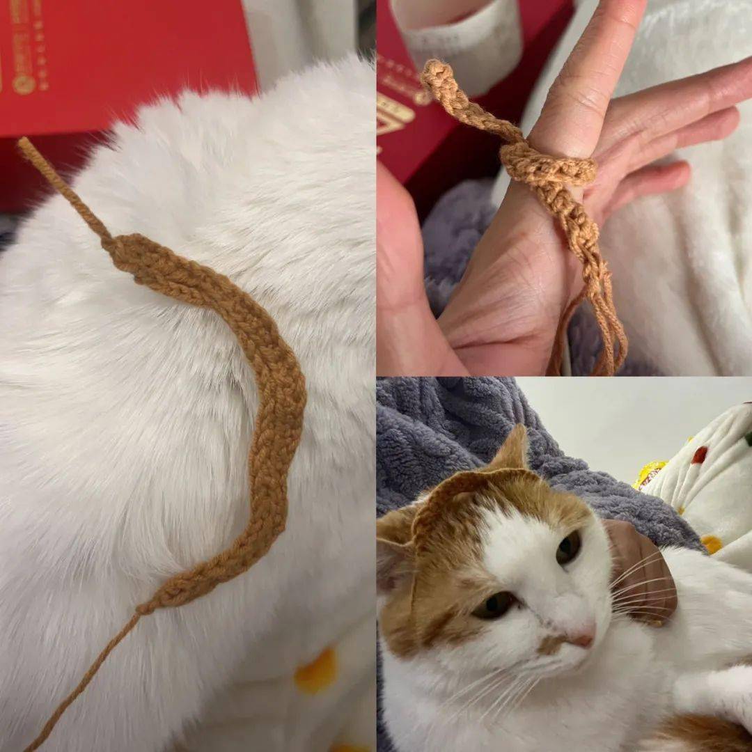 第一次钩织,钩出来歪歪扭扭的形似依托。于是从挑战怎么钩织好,变成挑战给织出来的成品找用处,目前找了手指围巾和猫猫女仆头箍两个用处。