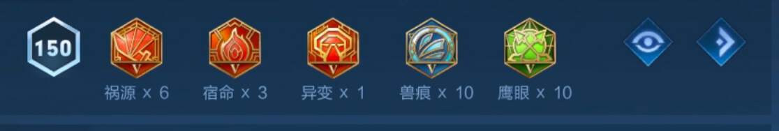 铭文推荐:10兽痕、10鹰眼、6祸源、3宿命、1异变