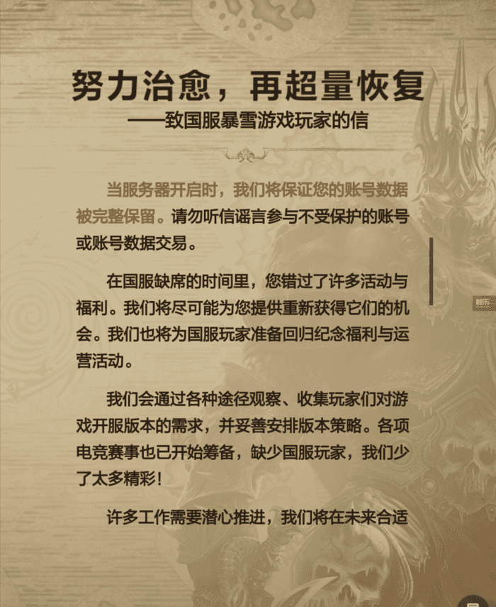 《致国服暴雪游戏玩家的信》片段