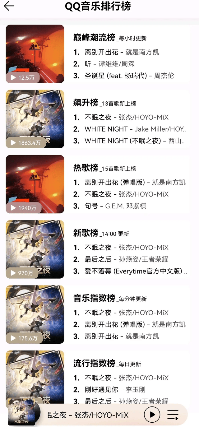 为什么星穹铁道的玩家会到张杰的演唱会现场许愿呢?这就要说到星穹铁道开启2.0版本后,张杰为游戏唱的主题曲《不眠之夜》了。这首歌上线就深受玩家喜爱,上线当天更是占据了各大音乐平台的多个榜单榜首的位置,俨然成了游戏的战歌。