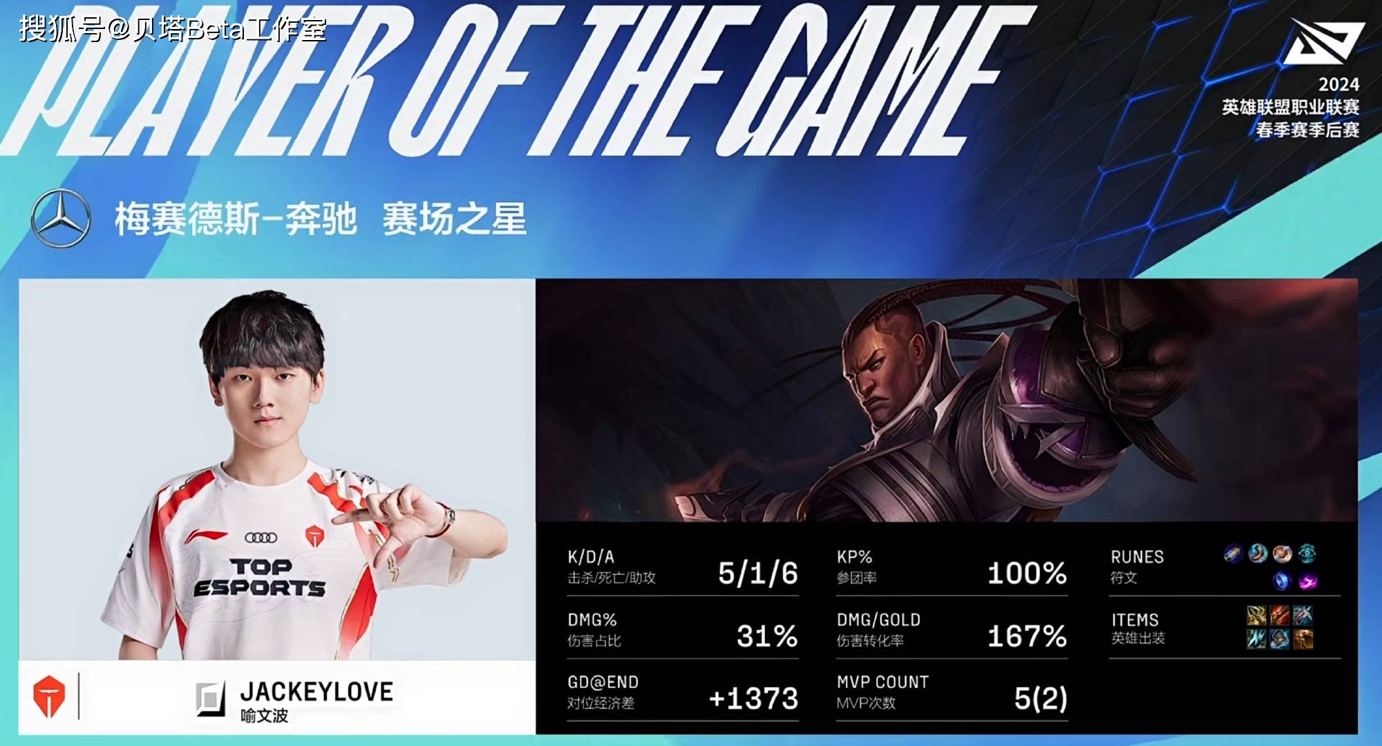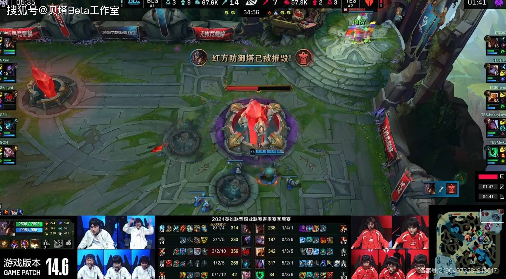 简单回顾一下这场BO5,第一局TES选出德莱文锤石的下路组合,而BLG则是三锁头阵容,前期双方有来有回,BLG的节奏更好一些,三路开花,前期拿到3K经济优势。中期几波团战,BLG都主动开团,直冲JKL德莱文,JKL无法在团战中存活,TES溃败。首局BLG顺利拿下。