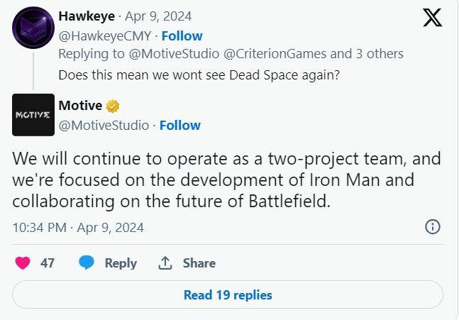 Motive目前也在开发《钢铁侠》游戏,之前曾制作过《星球大战:战机中队》。
