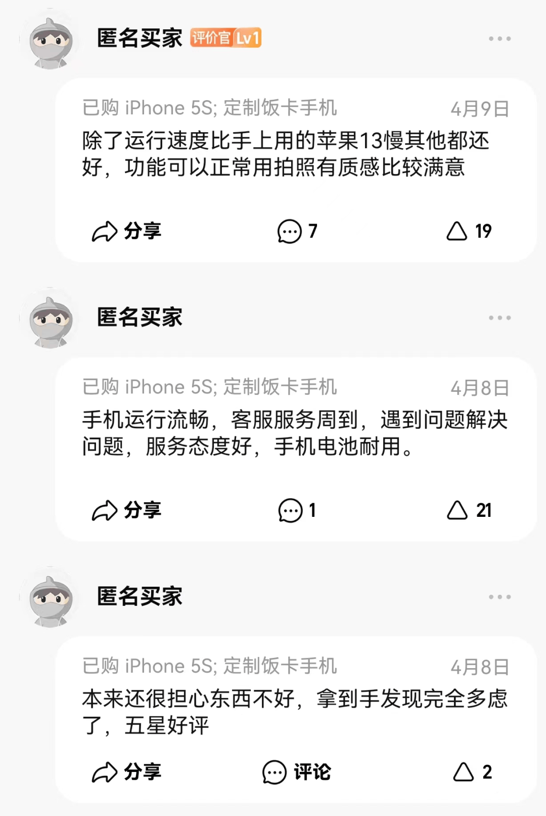记者在电商平台搜索关键词“饭卡爆改手机”发现,相关商品热度一路走高。随机点击某款商品链接,还发现了近期数条好评:“除了运行速度慢,其他都不错。”