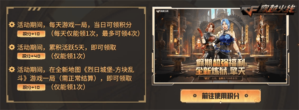 在4月20日至6月10日期间,CFer完成指定任务还可以领取狂猎积分用于抽取超值福利,每日游戏一局、累计活跃天数借参与全新地图游戏均可获得积分,全新生化皮肤的超值优惠活动不容错过。