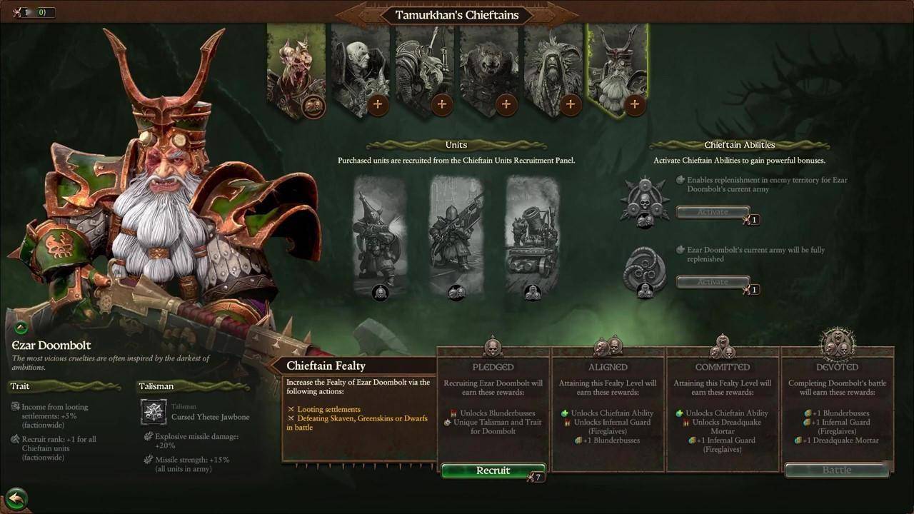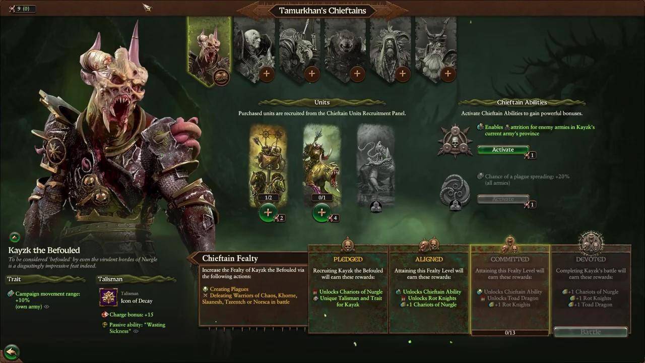 塔木尔可汗的圣战远征不仅是为了传播毁灭与衰朽,他从所经之处聚集了无数英雄人物,那些无法击败他的人都转而为他效命。 这些英雄人物与氏族长不断加入他日渐庞大的帝国,为蛆虫之主的大远征提供了无数的战士与勇者。
