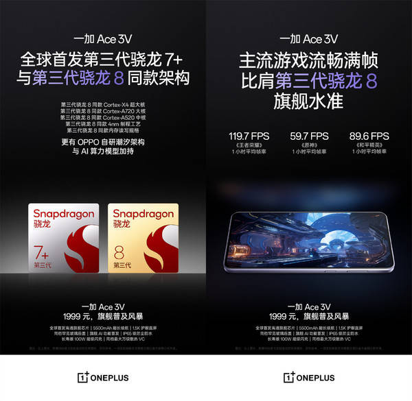 【CNMO科技行情】预算2000元左右想选一款游戏性能出色的手机?一加Ace 3V可能是这个价位的最优选。该机全球首发第三代骁龙7+移动平台,采用与第三代骁龙8同代ARM V9.2-A架构、和最新的台积电4nm工艺。架构、制程工艺都是第三代骁龙8同款,在潮汐架构与全局AI算力模型的加持下,性能表现超越同档。