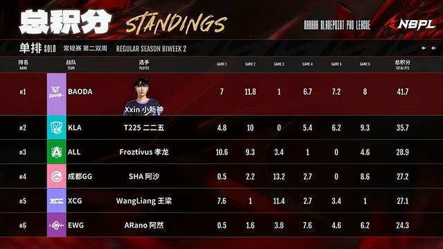 如果说小新神登顶第一是意料之中,那么AS垫底是真的让人意外了。从最初被誉为博弈机器人的他,再次回归单排的舞台似乎并没有想象中发挥那么好,看来三排的影响对于单排还是蛮大的。不少网友表示AS如果继续这样表现的话,很有可能直接被换的节奏啊,经常0人头0分的局实属有些不应该啊。