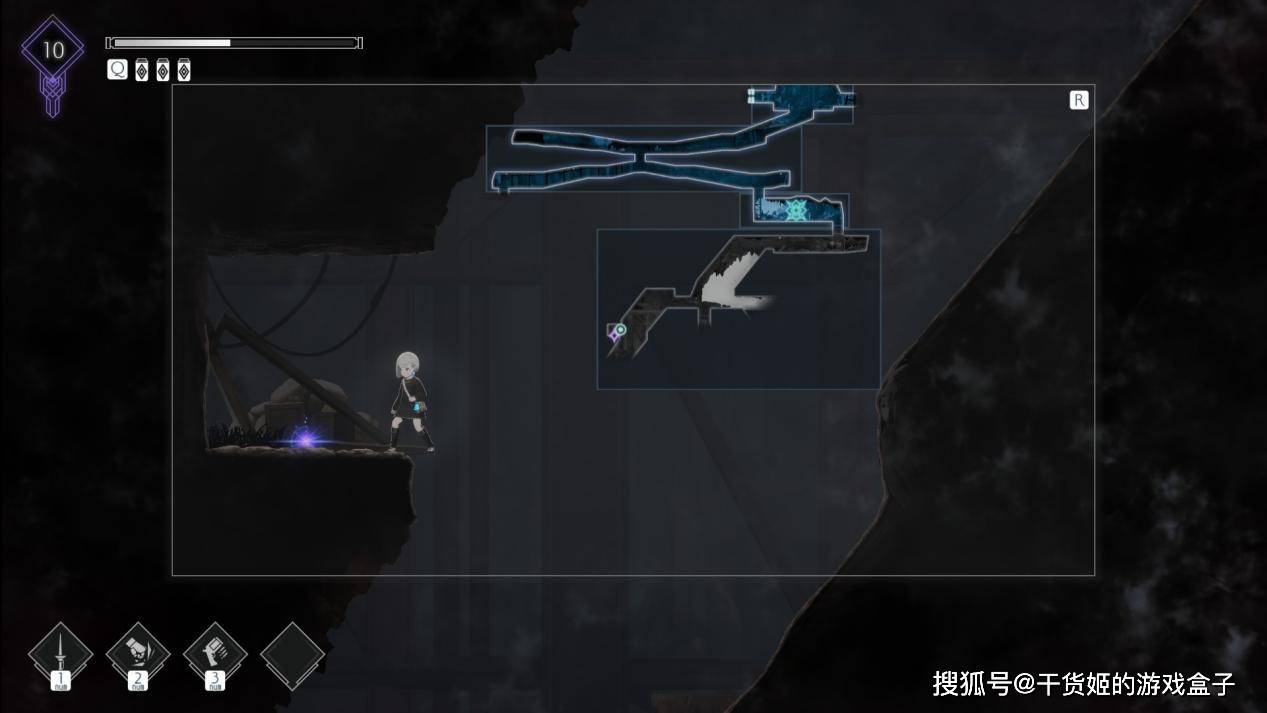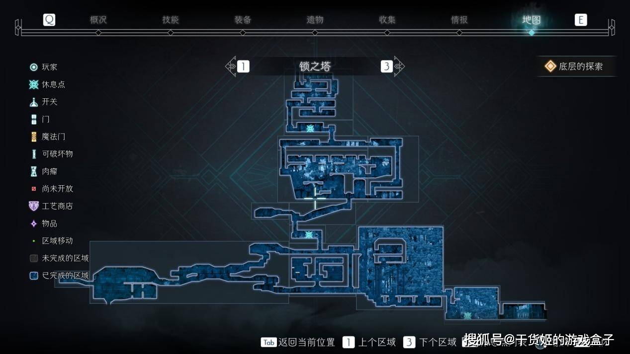 其实在进游戏时我便已经直观地感受到了这一作的不少进步了,前作关于地图设计和打击感两大毒点也都尽数抹除,本作的地图UI上精致地令我称奇,画面风格色调与游戏主题十分契合统一,甚至连地形走向都画的清清楚楚,可交互的地点、还没收集到的物品、还不能进去的地图区域也都会在地图上自动标记,直接替玩家都省去了不少来回标记的时间,在区域全收集完后也会从灰白亮起转为蔚蓝色,相比于前作的方块链接来说真的是大进步了。