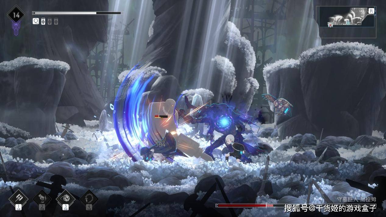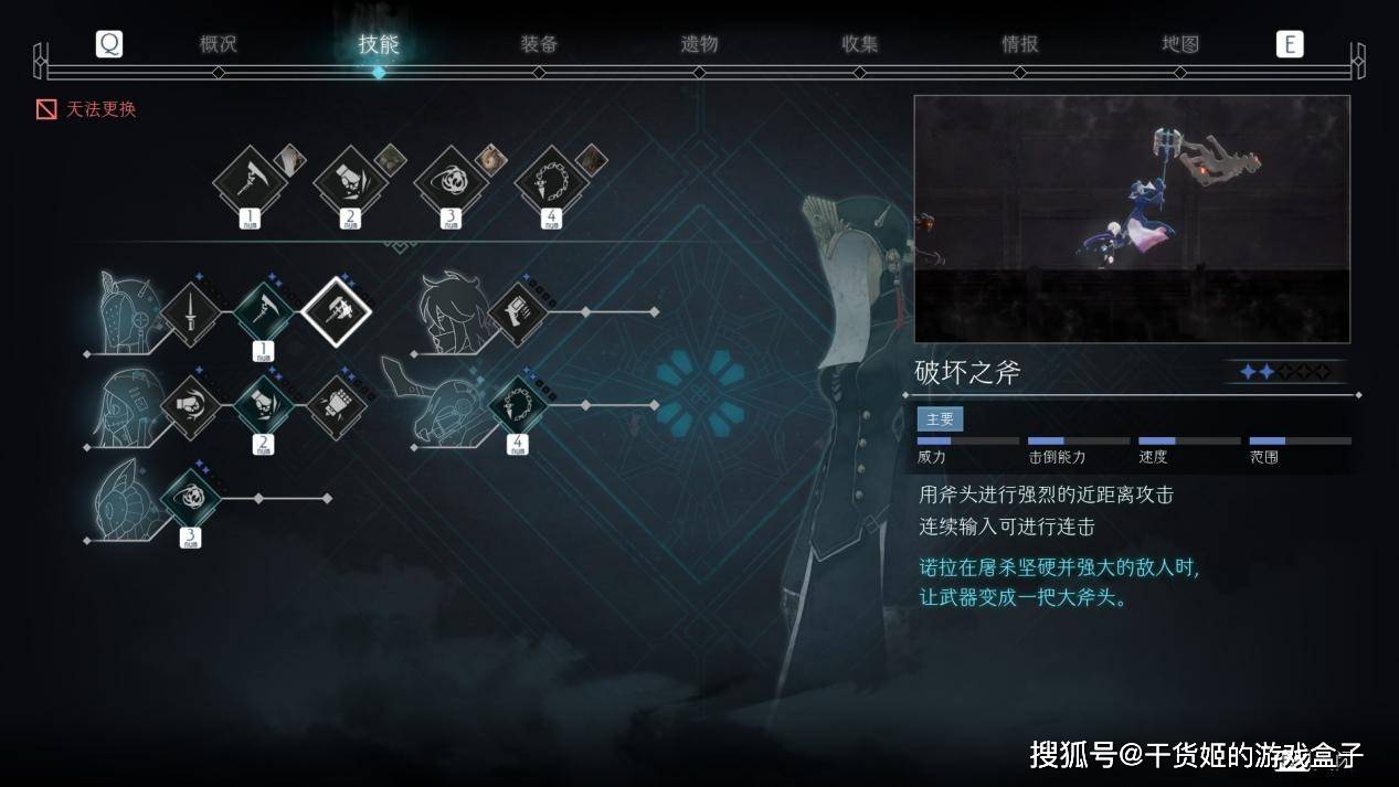 很让我惊喜的一点是,本作在技能树上添加了养成要素,玩家在休息点上可以通过消耗升级道具强化技能等级,开通新技能,每位伙伴都有3个截然不同的技能,譬如诺拉默认用攻速中等的长剑,而随着玩家收集道具,后续还能解锁战斧、镰刀形态,在攻速、伤害、削韧、功能方面都有所区分,其他伙伴亦然,根据玩家喜好或是技能构筑来自行调整技能流派。