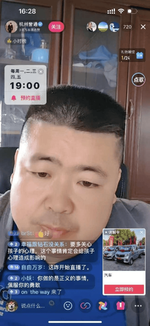 除了这位朋友,扇耳光视频的当事人更是在这两天频繁开启了直播。虽说这位父亲在直播中倾诉的内容还是自己儿子充值游戏的事情,但有眼尖的网友们已经发现,就在4月10日下午这位父亲直播时,直播间里面已经出现了有关汽车等产品的商品链接——看来相比于为儿子维权,引流带货似乎是这位父亲更看重的事情。