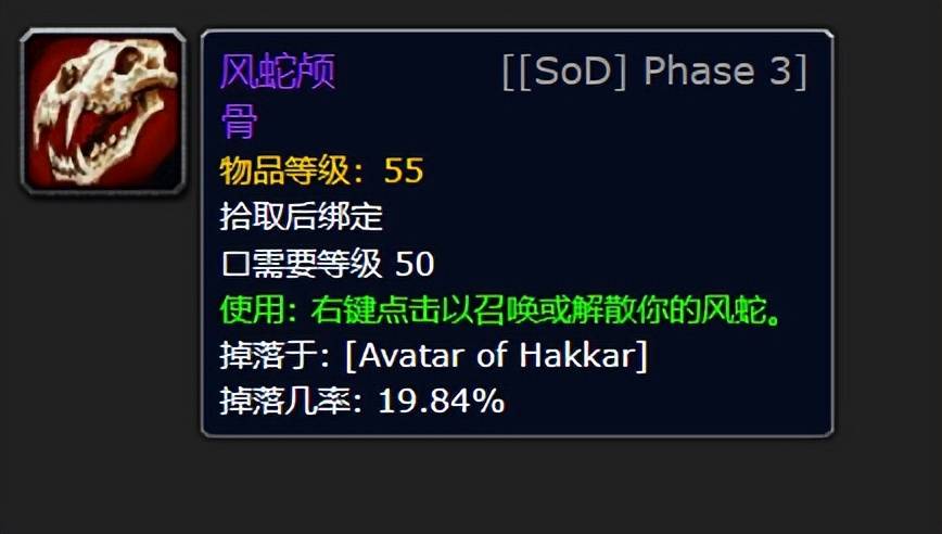 “风蛇颅骨”已有掉落记录,这是P3的新宠物,外形为骷髅造型的风蛇,由神庙Boss哈卡掉落。“风蛇颅骨”在数据库的掉率接近20%。