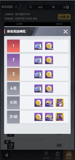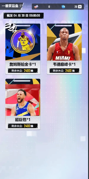 全新超值活动NBA一番赏正式开启,本期盲盒将分为2起,首期时间为4月11日0:00至4月14日23:59,第二期时间为为4月15日0:00至4月17日23:59。每期主题在活动时间内将全服生成若干个主奖励池,每个主奖励池中包含若干个奖励以及全服奖励数量,每期主奖励池的奖励中均将设有一个稀有奖励,玩家可随意切换主奖励池选择自己心仪的奖励池,确定主奖励池后即可每次使用若干数量的盲盒券赢取该奖励池内奖励,若盲盒券不足则可以消耗钻石进行抵扣。