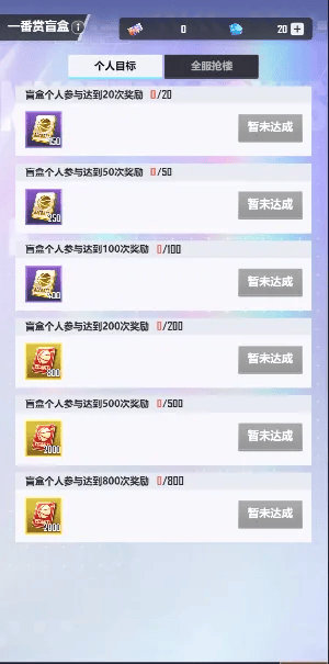 而除了获取盲盒奖励外,各位玩家开启盲盒达到指定次数,即可在个人目标界面领取对应奖励,同时,全服玩家打开盲盒达到指定次数,更可在“全服目标”界面领取超值豪礼!