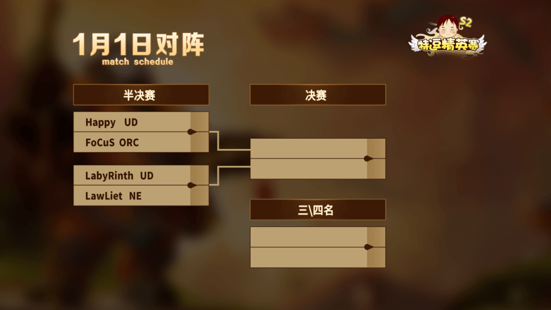 由TeD直播间主办的特逗精英赛S2将于2024年1月1日19点开启四强赛的争夺,半决赛对阵由Happy vs FoCuS、Laby vs Lawliet。