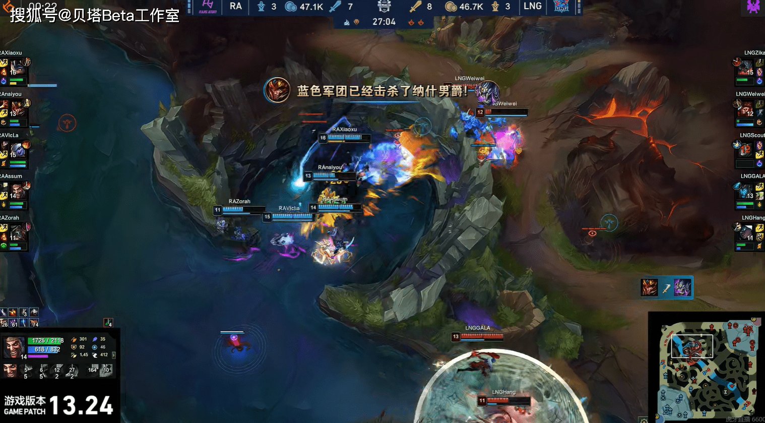 其实第四局最关键的还是scout发条中路那波被抓死,当时队友都在上半区,RA的人很明显从野区下来了,但是Scout的站位真的太冒险了,也因为他这波被抓死,导致掉了大龙。这波是第四局的转折点,如果按照之前的节奏继续打,LNG是有机会赢下比赛的,只能说失误确实太大,太不应该了。当然前期对线期LNG能够打得不错,主要也是scout对线打得很好,LNG的上下路对线都是劣势,如果不是scout中路对线期稳住了,也打不到这里来,只能说稳定性还是不够吧。