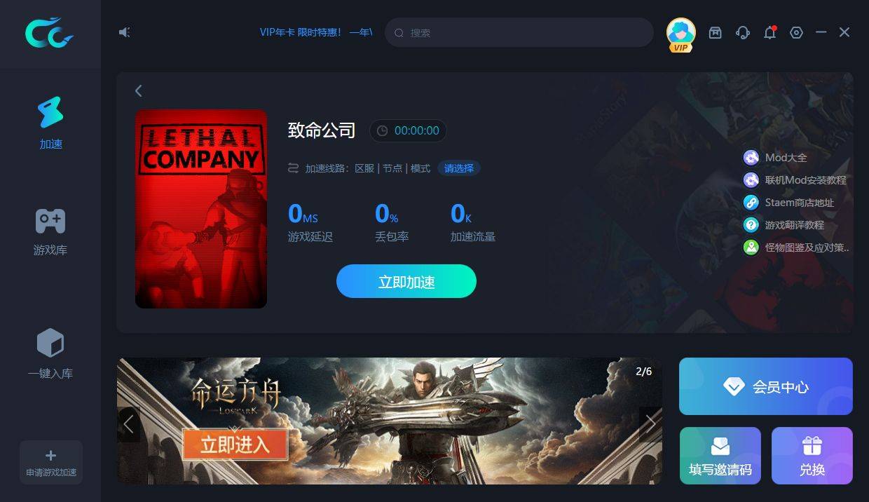 Lethal Company致命公司联机发生错误的问题还可能是网络连接异常导致,由于致命公司的服务器不在国内,类似的网络异常问题也很多,需要借助加速工具的帮助的才能解决,打开CC,加速致命公司,建立稳定的连接,即可超低延迟在线联机组队,目前cc已开启支持STEAM永久加速,在cc加速器PC版输入兑换码CC666