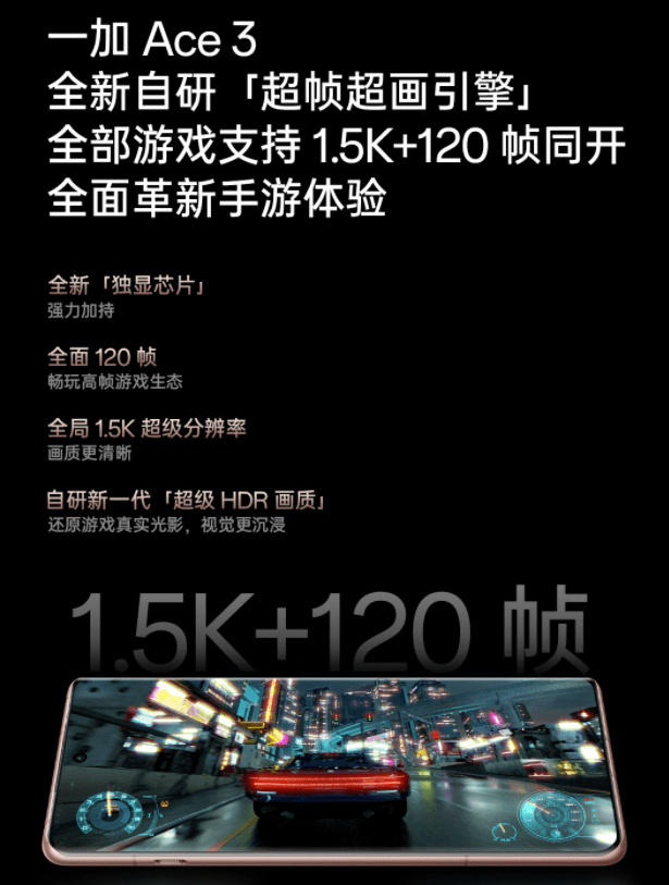 实际上,游戏帧率的稳定性是各大厂商一直在做的,只能算是A级考题。真正难以解决的S级考题,是如何在稳定高帧率的情况下,让用户同时拥有高清画质的体验。一加Ace 3给出的解决方案是全新升级的超帧超画引擎。通过定制独显芯片搭配AI超分能力,可以实现所有游戏超帧超分同开,兼得120帧和1.5K。在此基础上,新一代自研超级HDR画质,更加突出了游戏画面的光影感,让玩家具有了更真实的沉浸感。